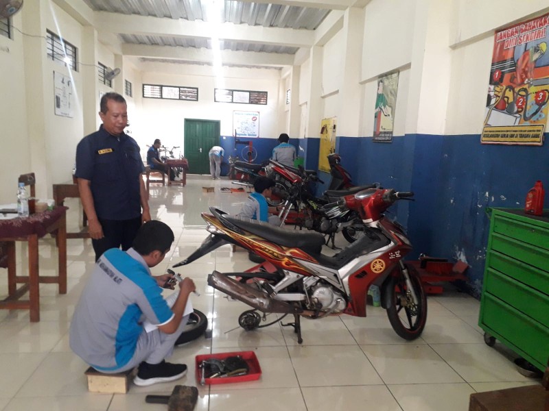 Materi yang diujikan mengacu pada paket soal dari dinas dengan empat job berbasis kompetensi sasis, yaitu komsteer, rantai dan roda belakang, sistem rem, serta sistem suspensi. Selain ujian praktik, peserta didik juga mengikuti ujian tulis sebagai bagian dari standar penilaian kompetensi.